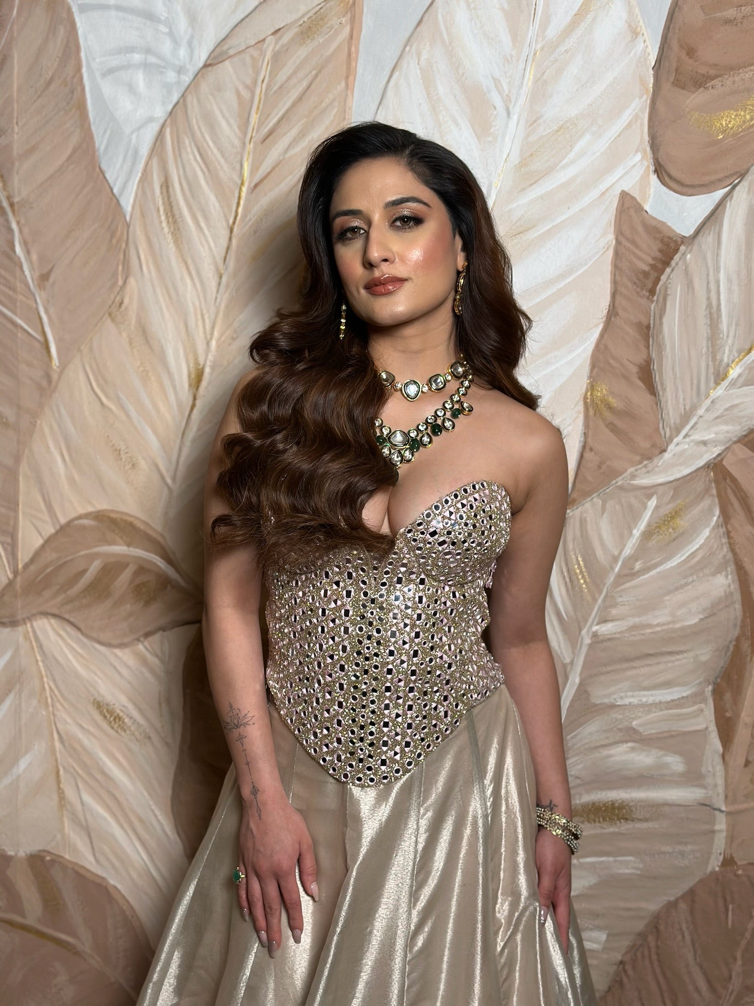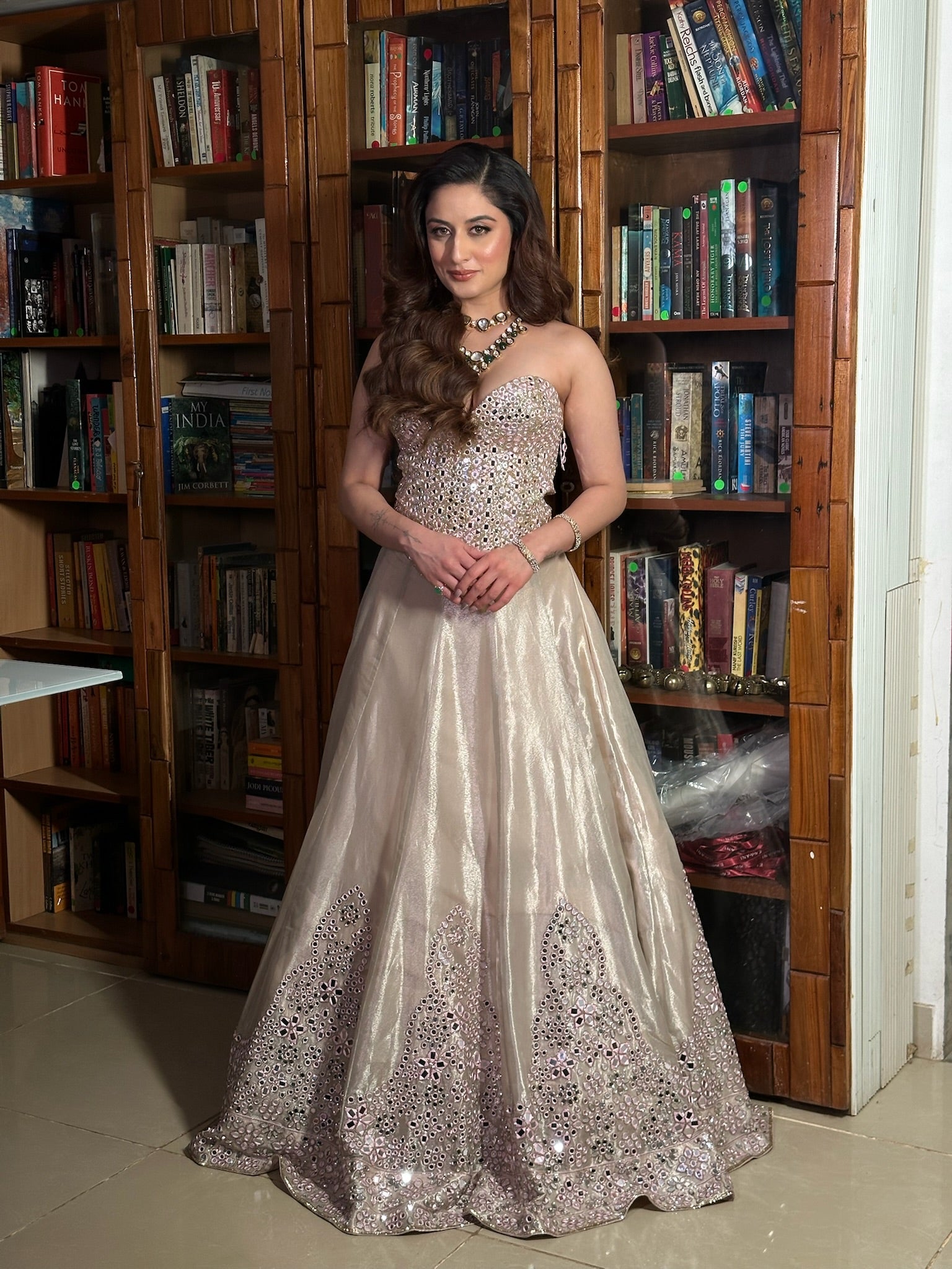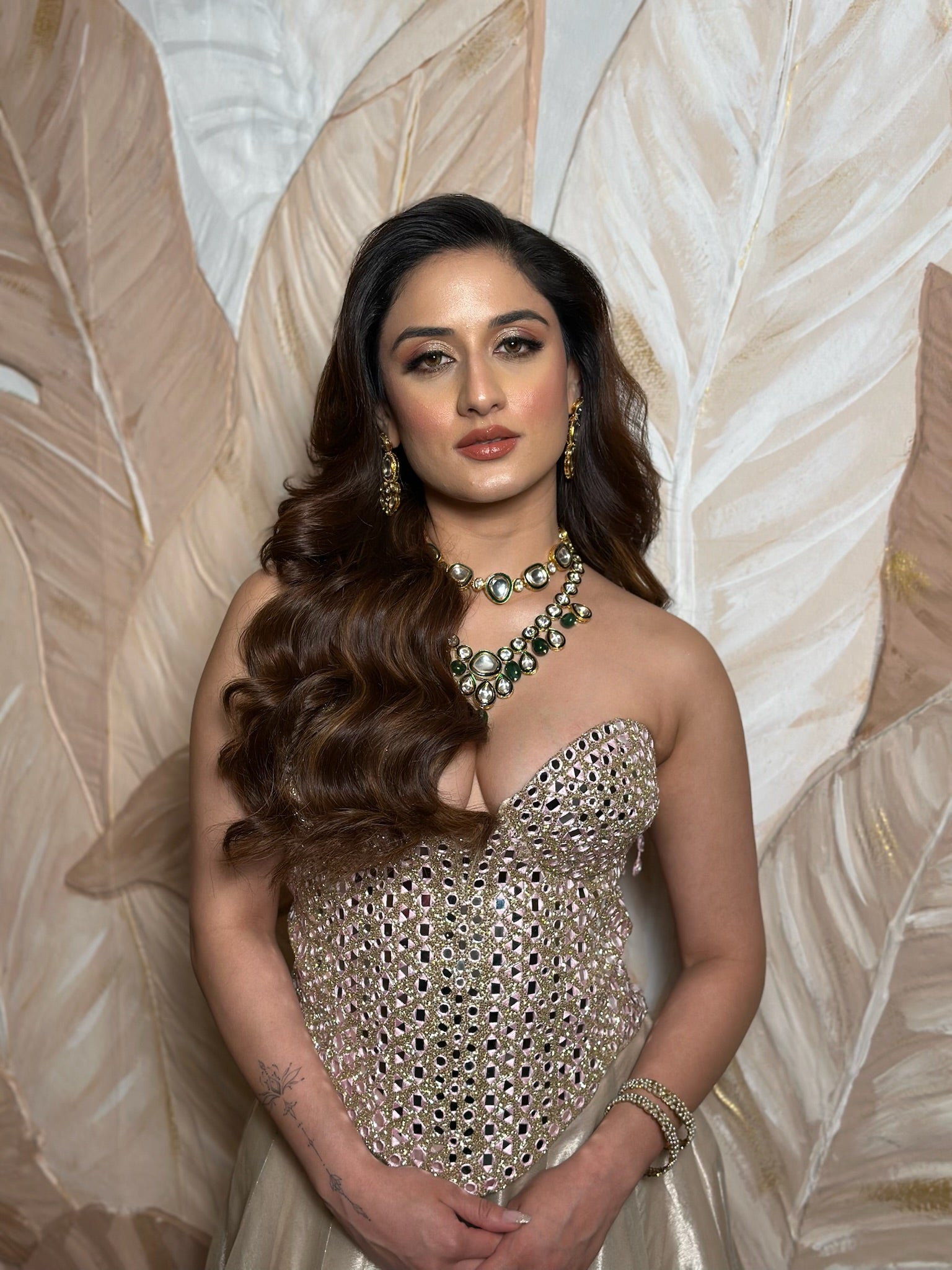 Fell in love with mirror work all over again while creating this blush pink corset lehenga β¨