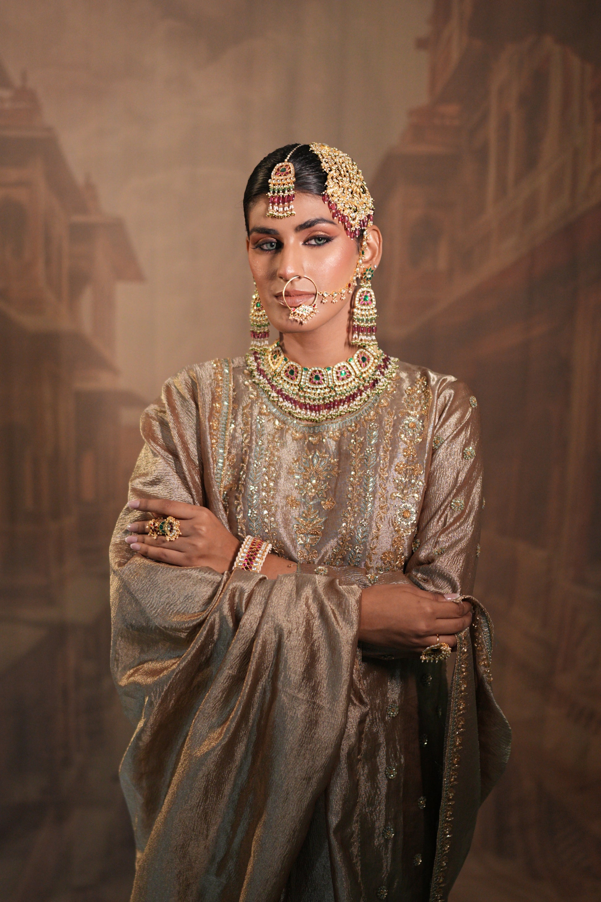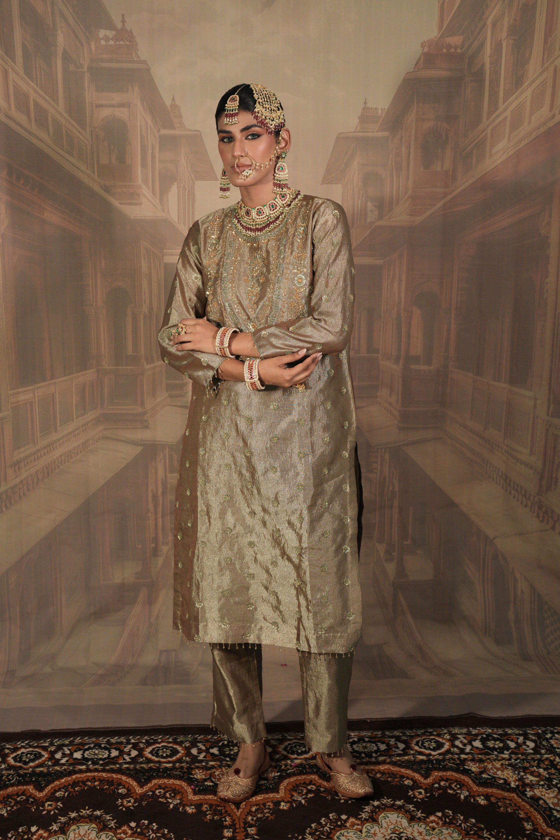 Experience timeless elegance with our latest design Silk Tissue kurta set from "Nooraniyah Collection "
